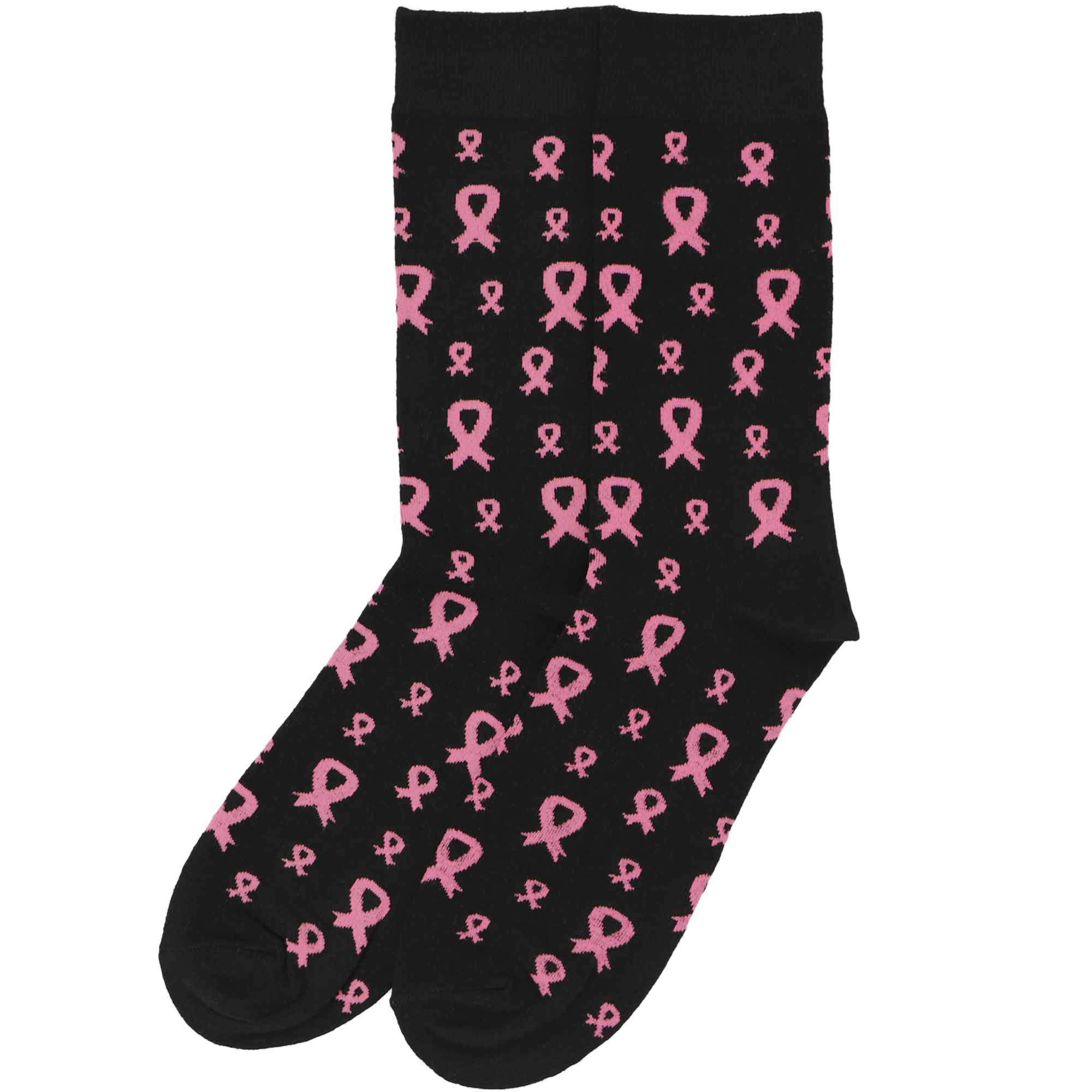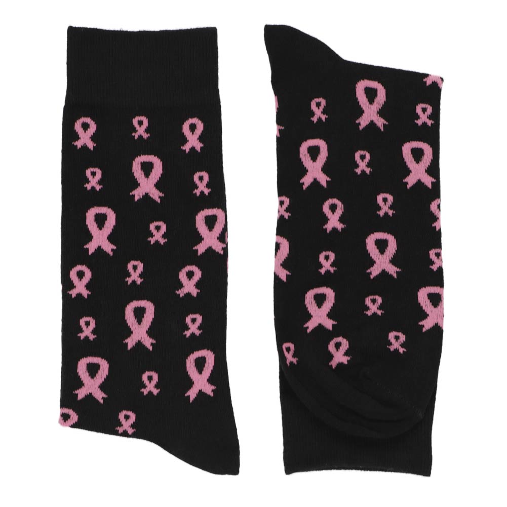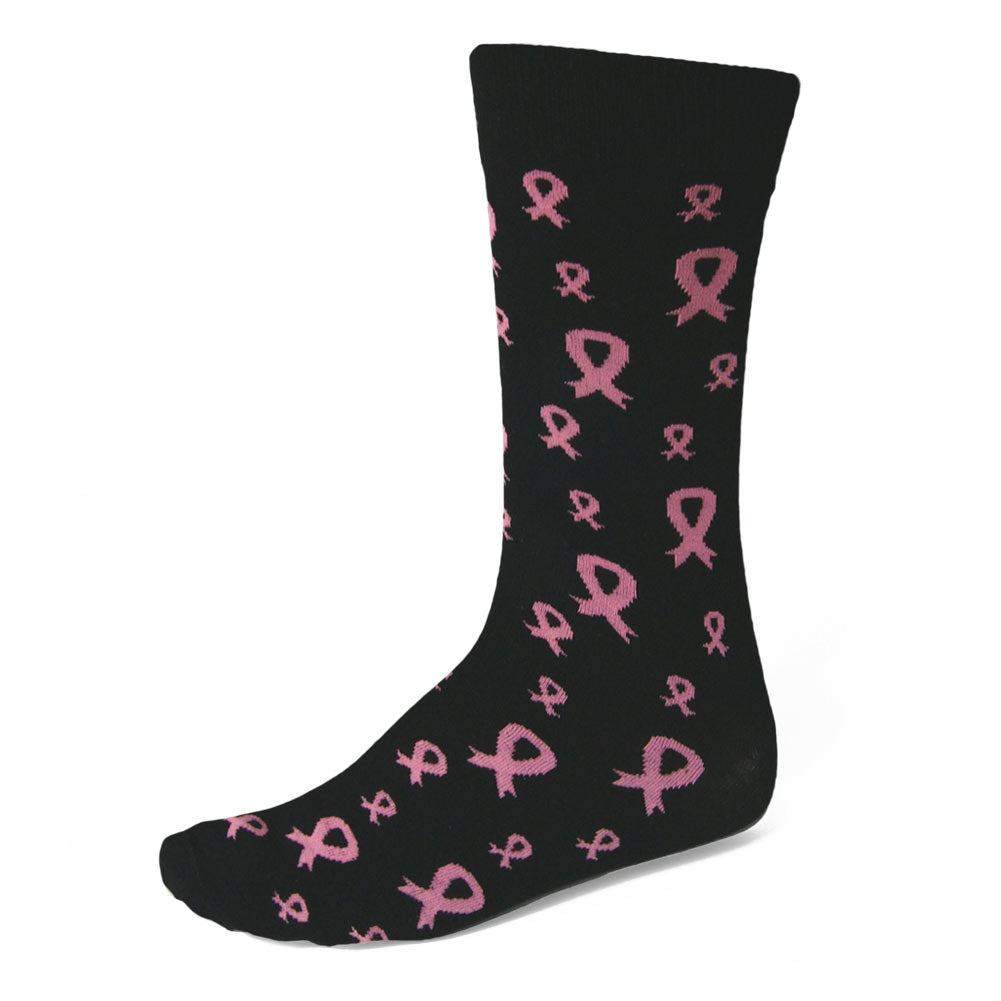 Show your support with these pink ribbon socks. These socks are a TieMart exclusive design and are made to match our pink ribbon ties (shown below). They feature a tasteful pink ribbon pattern on a black dress sock. This is an appropriate pair of socks to honor someone you love or to raise Breast Cancer Awareness.